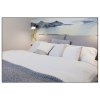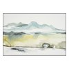 V horizontu se vynořují hory, zahalené do mlhy či jemného oparu, což dodává scéně dojem tajemství a nekonečna. Před horami se rozprostírá krajinářská scenérie, možná s měkkými tvary evokující louky, cesty, vodní plochy s jemnými detaily jako stromy, keře či květiny, které dodávají život a autentičnost této krajině. Motivy jsou namalovány minimalisticky ve stylizovaných liniích, aby jste si mohli dosadit krajinu svého srdce nebo vidět pokaždé něco jiného. České středohoří je známé střídáním skalních útvarů a malebných rovin, na severním břehu modrozeleného jezera Balatonu od pláží prudce stoupají svahy Bakoňského lesa s proslulými vinicemi a měkké kopce krajiny střední Itálie, které známe z renesančních obrazů. To všechno může tvořit atmosféru vašeho interiéru.