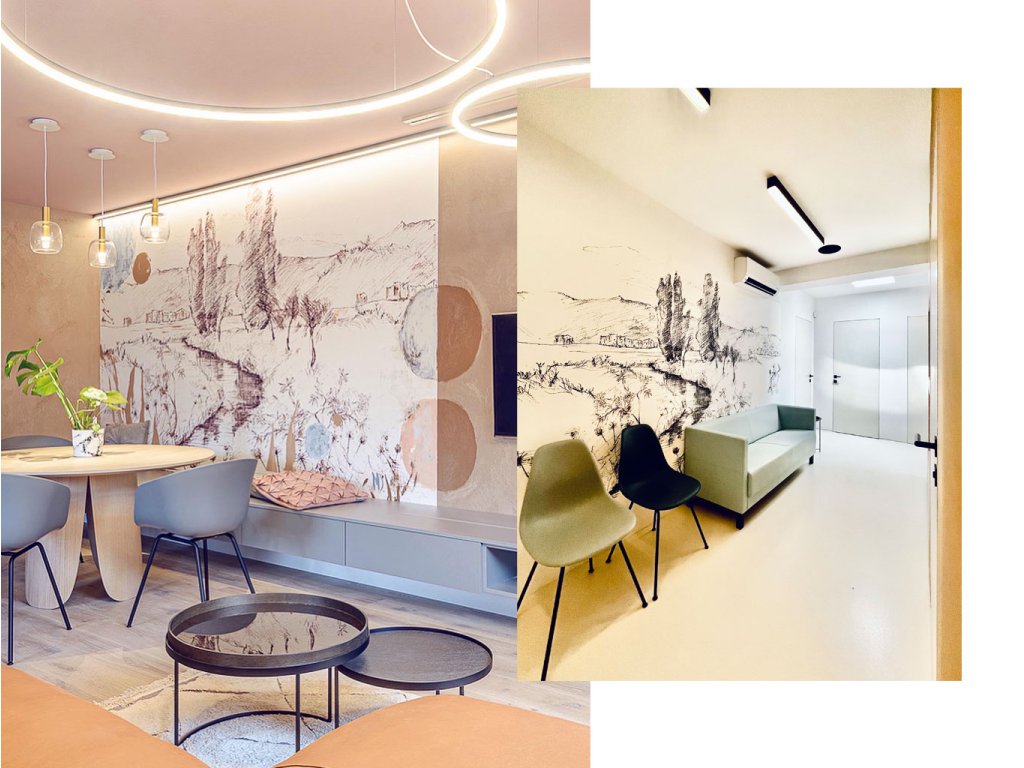 Nástěnné malby fungují nejen jako ozdoba, ale i okno do dalšího imaginárního prostoru. Nová perspektiva krajiny Umbria opticky zvětší prostor. A když chybí okno, zajistí i výhled. Díky tahům rudky a uhlu máte pocit, jako by kresbu někdo naskicoval na zeď.